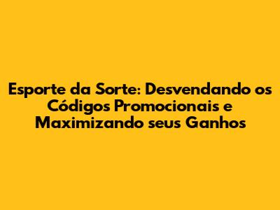 Esporte da Sorte, um dos nomes mais vibrantes no cenário de apostas online, oferece uma experiência emocionante para os entusiastas de esportes. Mas, como aproveitar ao máximo essa plataforma? Uma das chaves para uma jornada de sucesso são os códigos promocionais. Neste artigo, vamos mergulhar no universo dos códigos promocionais do Esporte da Sorte, desvendando seus segredos e mostrando como eles podem impulsionar suas apostas e, quem sabe, trazer grandes vitórias. Preparem-se, porque a diversão está só começando!