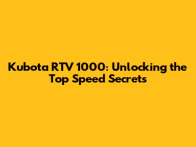 Kubota RTV 1000: Unlocking The Top Speed Secrets