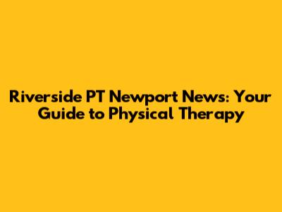Hey everyone, let's dive into the world of Riverside PT Newport News! If you're in the Newport News area and dealing with pain, recovering from an injury, or looking to improve your physical performance, you've probably heard about or are searching for top-notch physical therapy services. Well, guys, you've come to the right place to get the lowdown on what makes Riverside PT Newport News a name you can trust. We're going to break down why physical therapy is so crucial, what you can expect, and how finding the right clinic like Riverside PT can make a world of difference in your journey back to health and wellness.