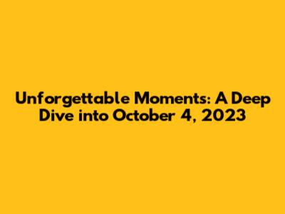 Unforgettable Moments: A Deep Dive Into October 4, 2023